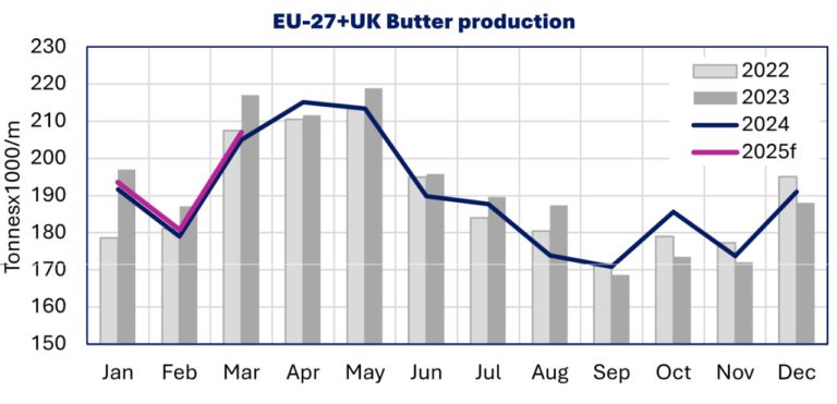 Production: In the US, NFDM production continues to ramp up seasonally, rising by 3.5% from February to March, besting the MoM five-year average. However, output still fell short of prior year levels in March. In the EU, production figures were…